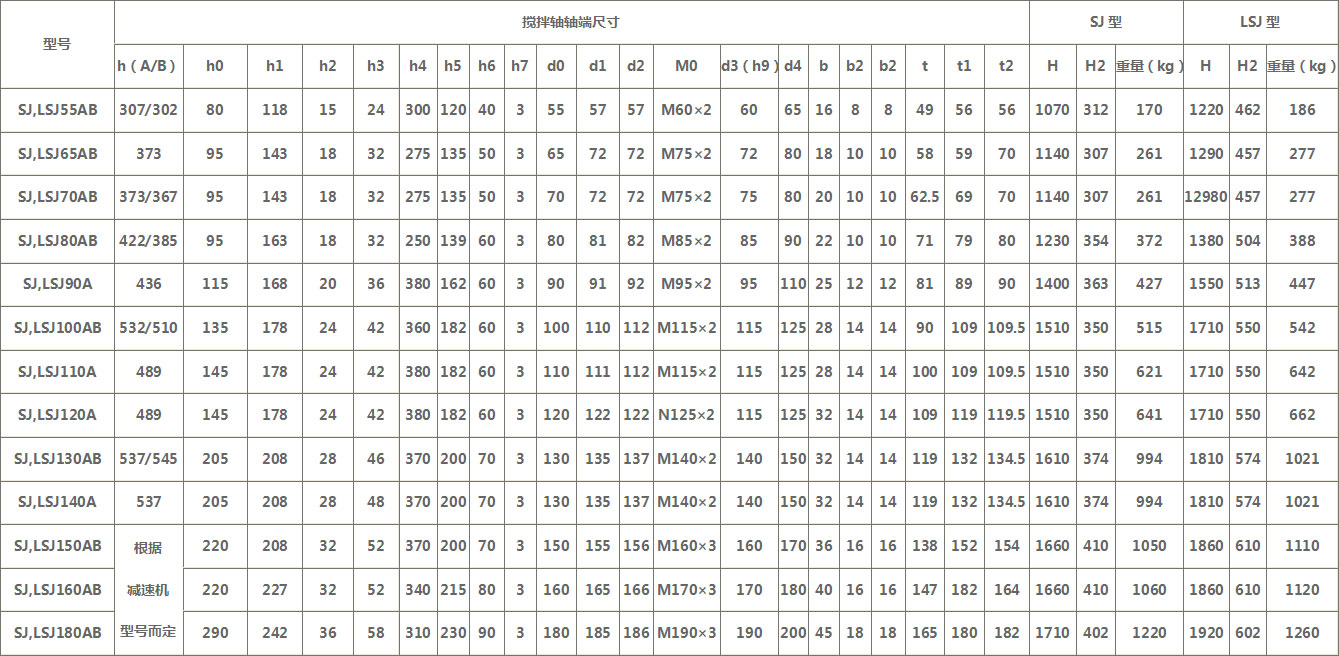 注:圖示所注“h”僅與本樣本BLD、LC-Ⅱ、DC-Ⅱ系列減速機相配,如選用其他型號或其他廠家減速機,“h”需另行計算。增高后的LSJ型機架其下部空間高度可容納205、206或207型雙端面機械密封。