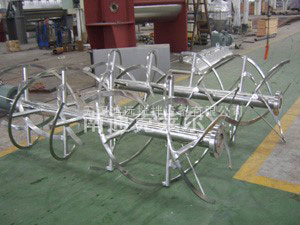 GLD攪拌器應(yīng)用于高粘度(超過100,000cp)的流體攪拌中,有較好的傳熱和表面效果。其結(jié)構(gòu)形式有單螺帶和雙螺帶二種。不同數(shù)量的翼片,不同螺距以及不同形式的螺帶可以根據(jù)不同的攪拌要求而特殊制作。